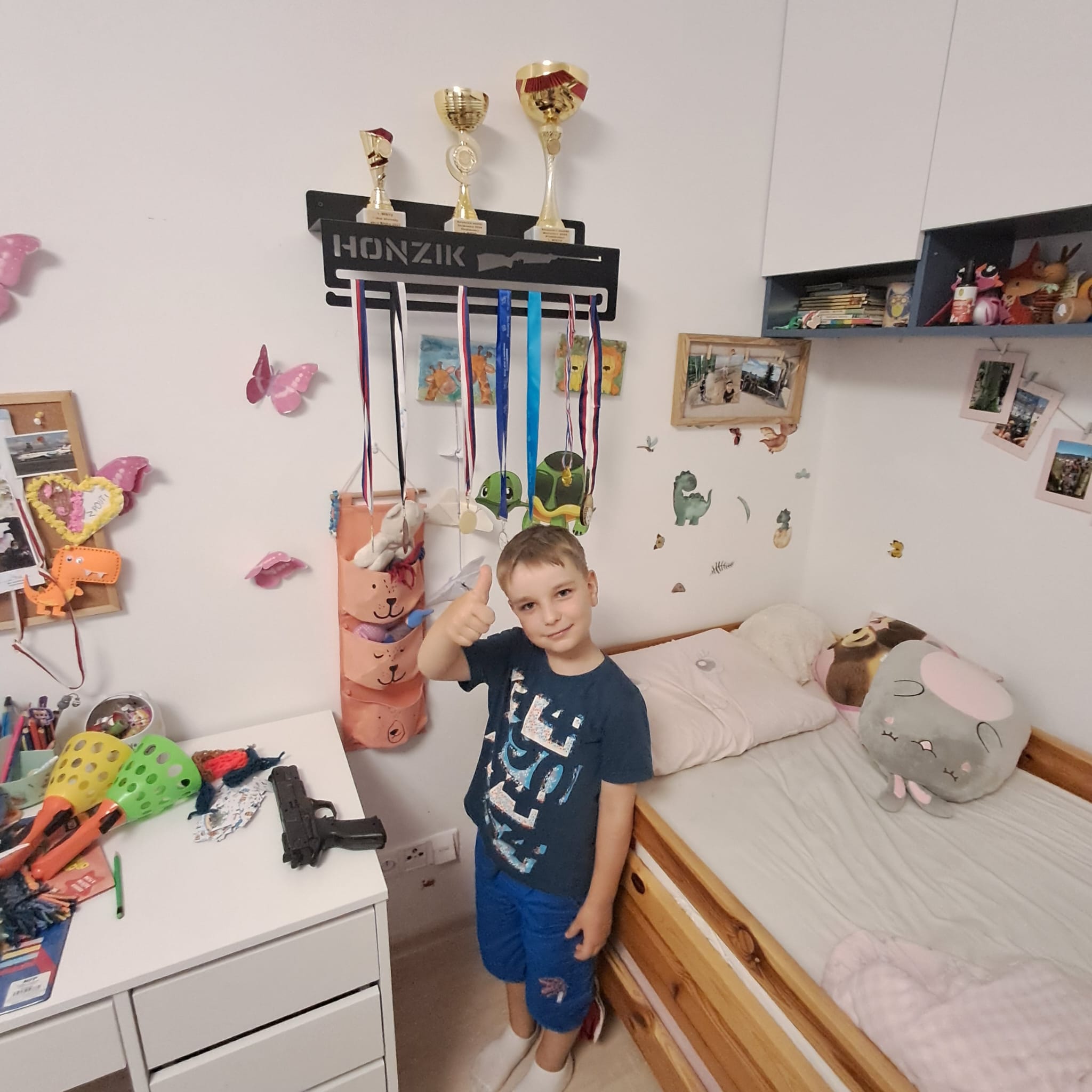Foto od Honzíka, který od rodičů dostal svou vlastní polici na poháry