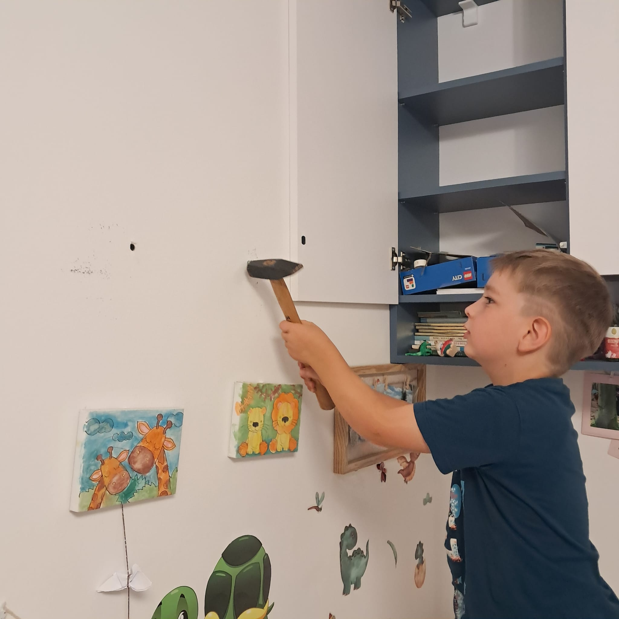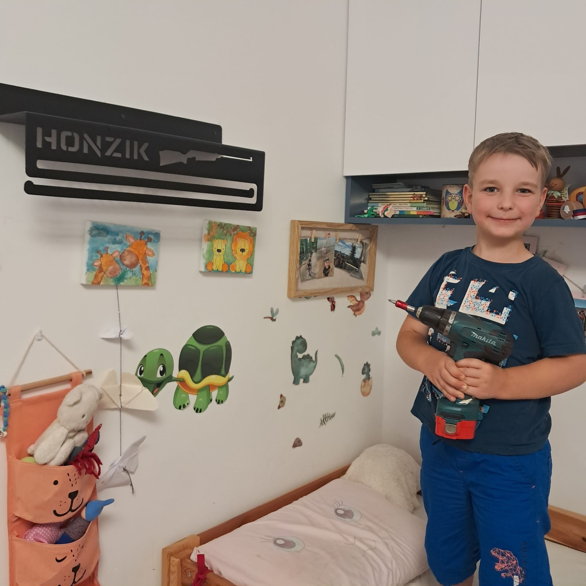 Foto od Honzíka, který od rodičů dostal svou vlastní polici na poháry