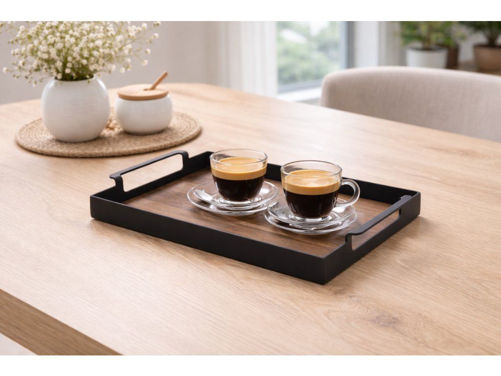 Malý tác z kovu a dýhy amerického ořechu