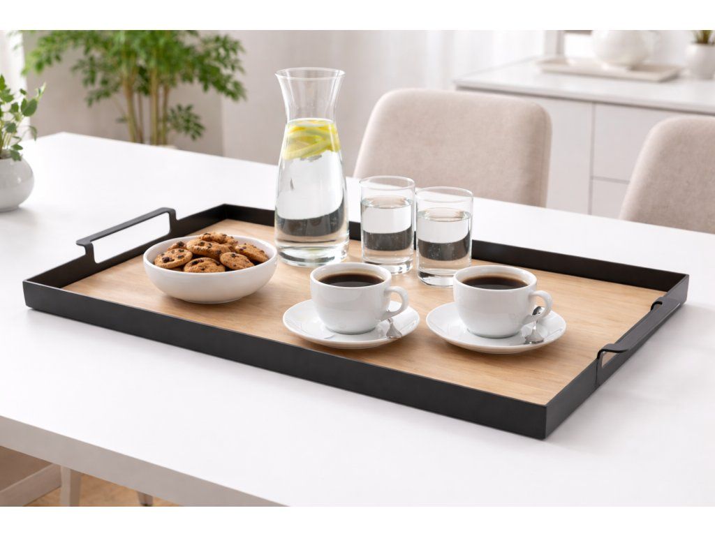Velký tác z kovu a dýhy amerického ořechu
