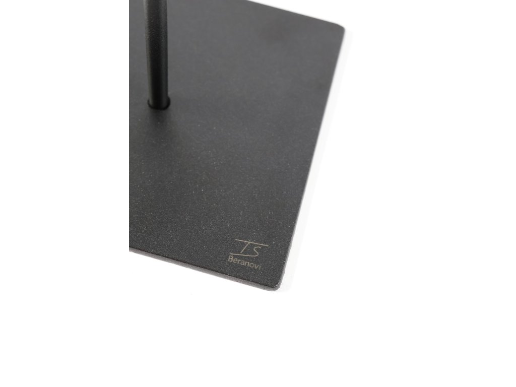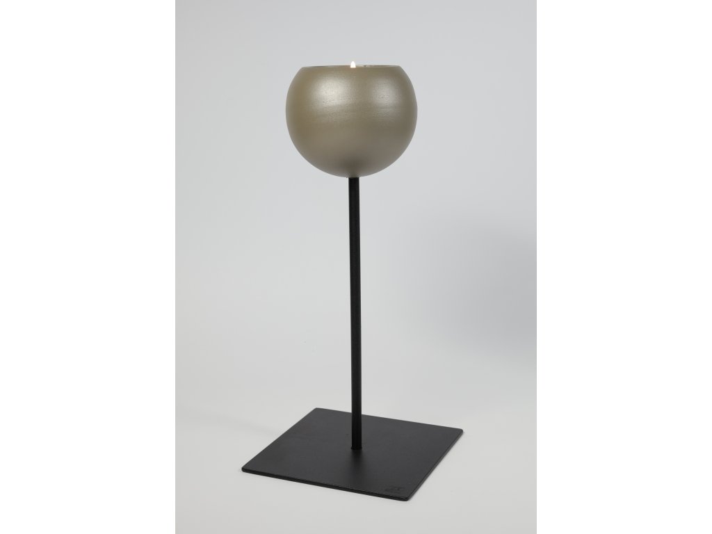 Elegantní kovový svícen na noze v odstínu Gris 2500 Sable. Vzdušný design, pevné řemeslné zpracování a koule jako symbol rovnováhy a klidu. Ruční výroba v rodinné dílně TS. Beranovi.
