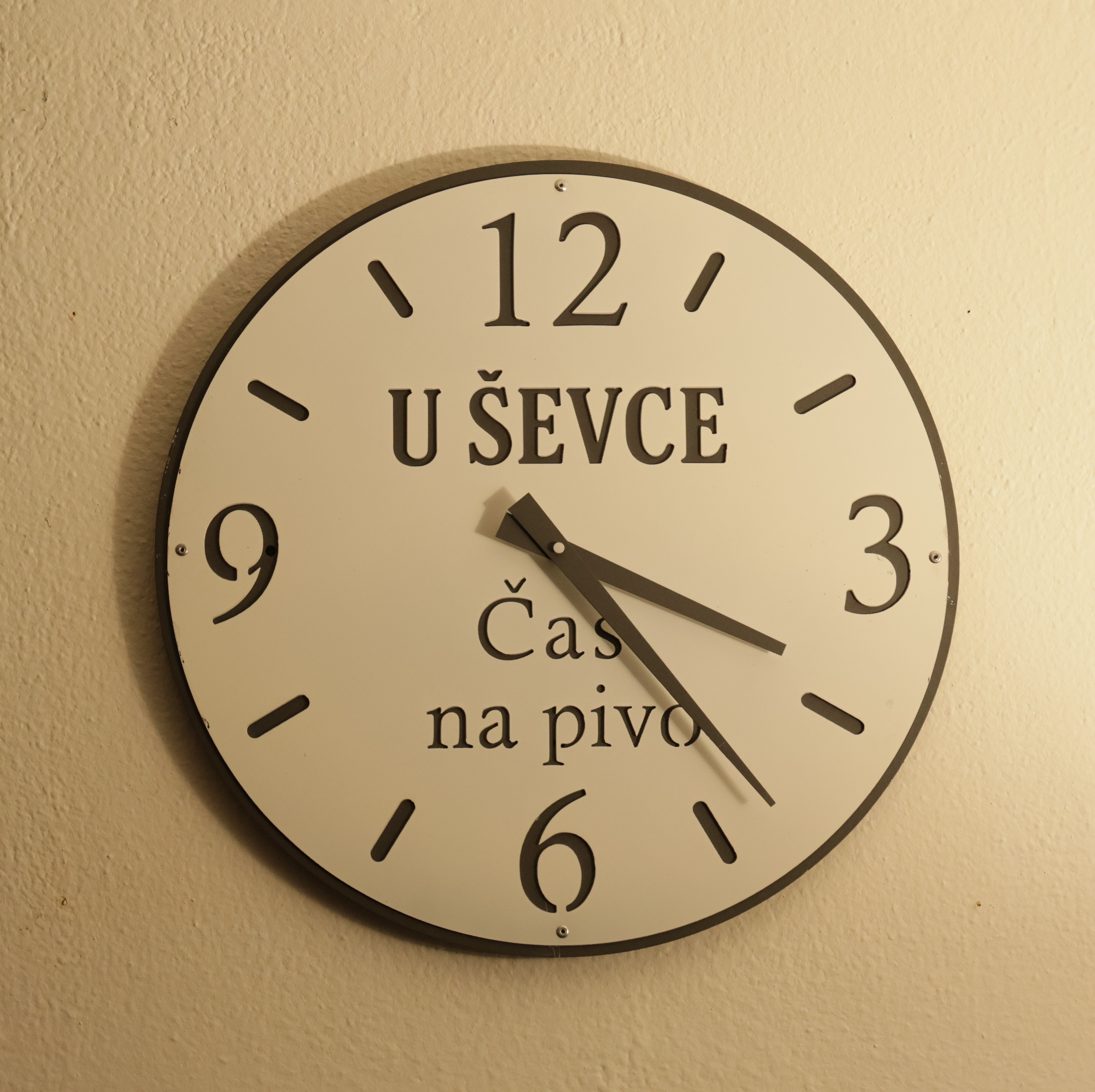Od velké podsvícené cedule s logem, přes kovové nápisy na baru, až po držáky tácků a vlastní nástěnné hodiny – všechno vzniklo přesně podle přání majitelů.