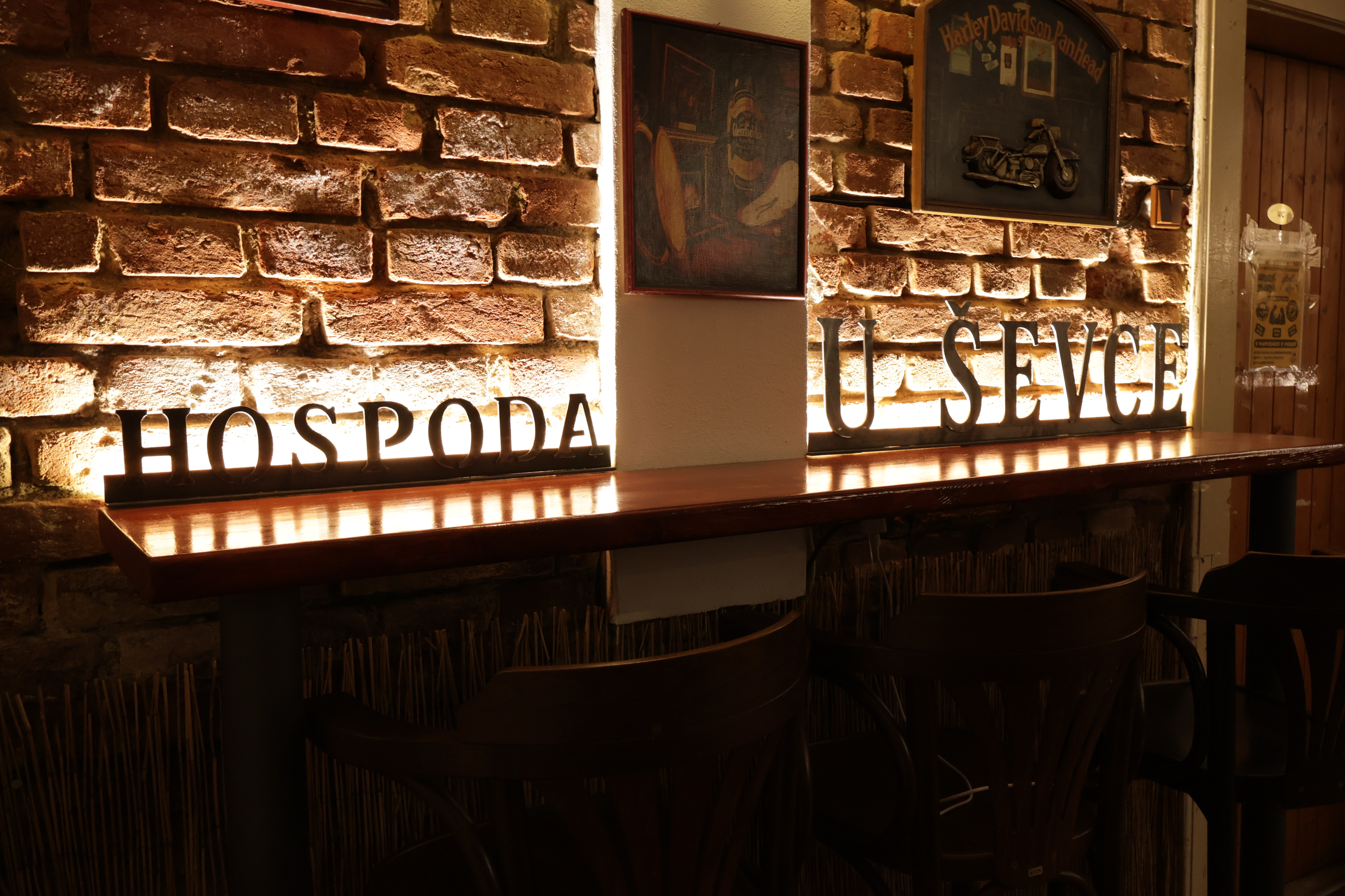 Pro Hospodu U Ševce jsme vyráběli sérii kovových doplňků, které sjednotily celý interiér a dodaly mu osobitou atmosféru.